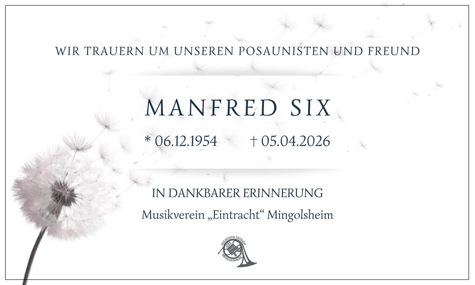 Wir als Musikvereinsfamilie trauern um unseren Posaunisten und Freund Manfred Six. Über 15 Jahre lang teilten wir mit Manfred unsere Leidenschaft für die Blasmusik, erlebten tolle Konzerte und ein…