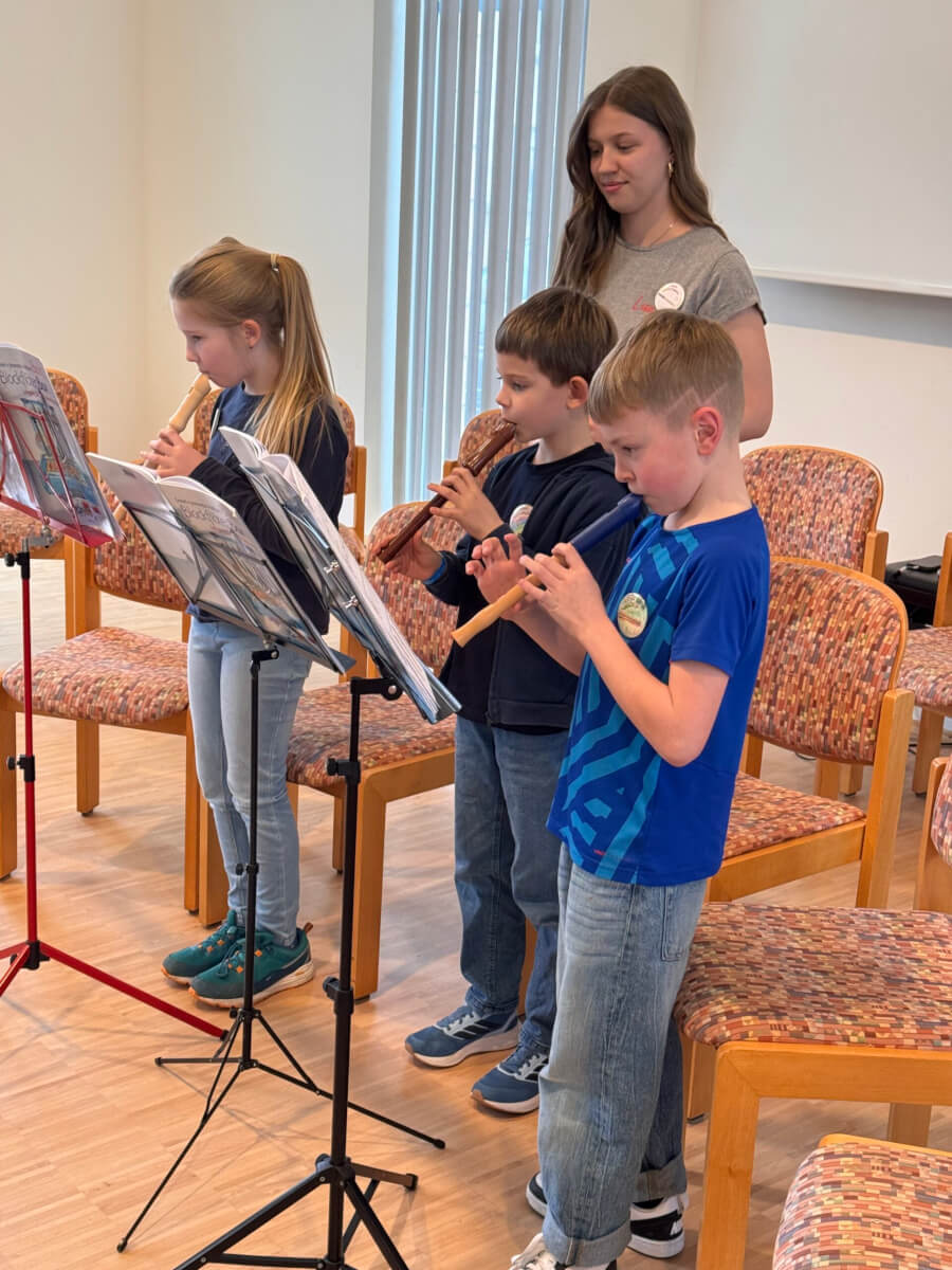 Am vergangenen Sonntag präsentierten sich unsere verschiedenen Jugendgruppen beim Vorspielnachmittag im Edith-Stein-Haus. Nathalie Dammert, stellvertretende Jugendleiterin, führte durch das Programm. Für die Blockflötengruppe unter der Leitung von Lisa Tutsch war dies der erste Auftritt, den sie mit Bravour meisterten. Es folgten die beiden Orchester unserer Bläser-AG, die seit einem halben bzw. eineinhalb Jahren Unterricht haben. Steffen Michenfelder und Klara Tutsch sind die Dirigenten jeweils eines Orchesters. Anschließend präsentierten sich die Jungmusikerinnen, die im Sommer das Jungmusikerleistungsabzeichen in Silber bzw. Gold absolvieren möchten. Dies sind Josepha Willhauck, Luise Tutsch, Fenja Dohrn, Marlene Rausch und Klara Tusch. Sie alle haben sich bestens präsentiert und können der praktischen Prüfung sehr positiv entgegenblicken. Den Abschluss bildete unser Jugendorchester unter der Leitung von Sophia Knebel, das die zahlreichen Gäste mit einigen Ohrwürmern unterhielt.